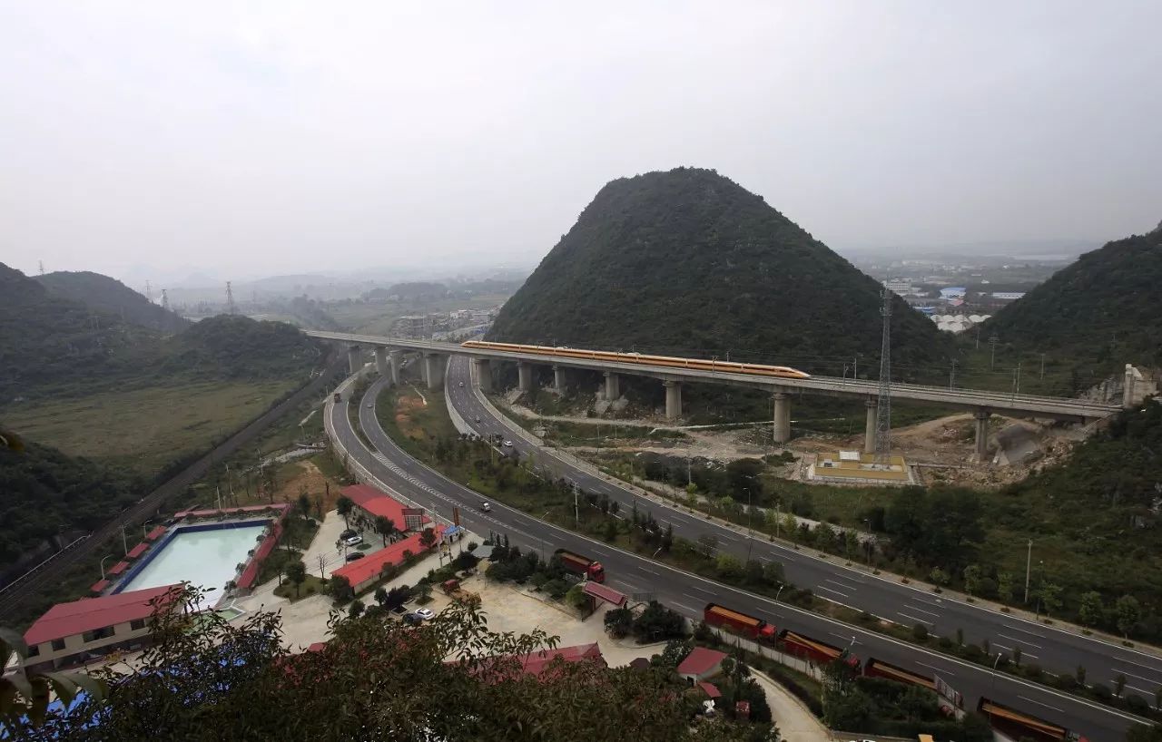 ▲2016年09月21日,高速铁路检测车在沪昆高铁贵州西段贵安新区境内的运行(来源:视觉中国)