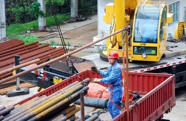 7.  工作人员从吊物底下穿过,吊起吊物在吊物底下加工。