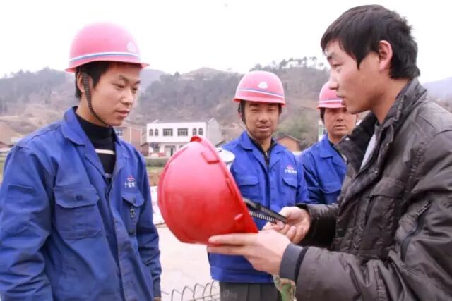 2.  正确佩戴安全帽:帽子佩戴端正,系紧帽带。