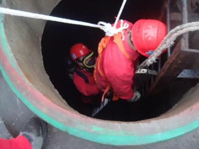 5.受限空间入口处必须设置救援设施,如搭设三脚架,挂滑轮,拉救援绳,救援绳一端固定在受限空间外,一端与进入人员安全带系牢。