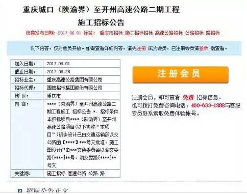 据记者了解,今年6月初,重庆城口(陕渝界)至开州高速公路二期工程在中国采购与招标网、重庆市招投标综合网、重庆市交通委员会等网站联合发布施工招标公告,进行公开招标。
